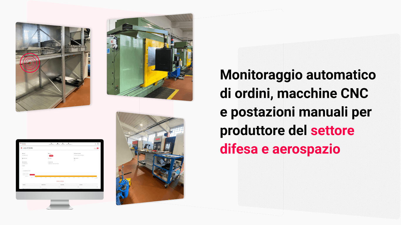 Tag sugli ordini seguono automaticamente il loro movimento tra reparti e fasi produttive, mentre sensori plug&play rilevano quando macchine e postazioni sono attive o ferme.