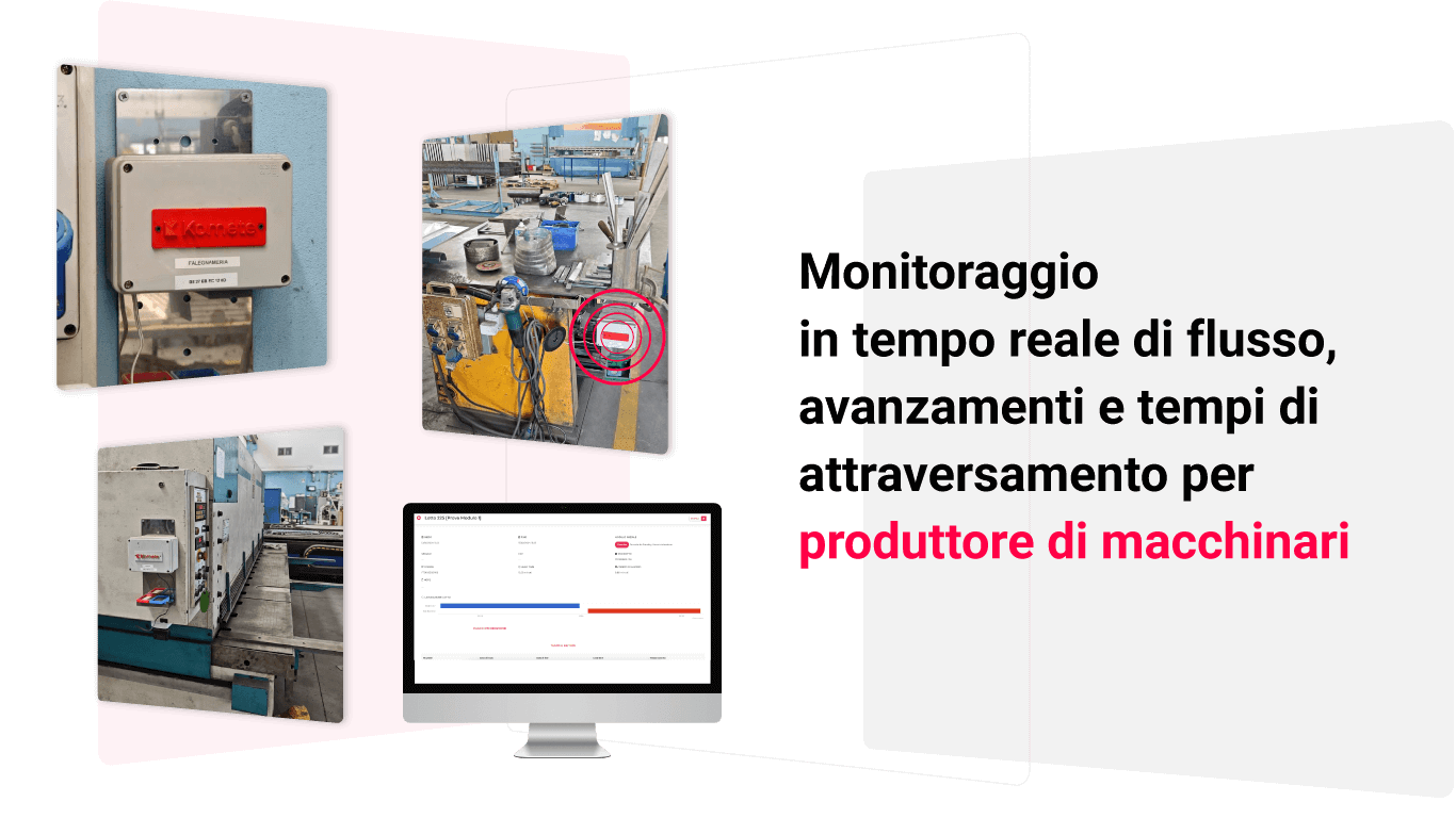 Komete unisce tracciabilità automatica di ordini e semilavorati con il monitoraggio plug&play di macchine e postazioni. Avanzamento reale, non dichiarato.